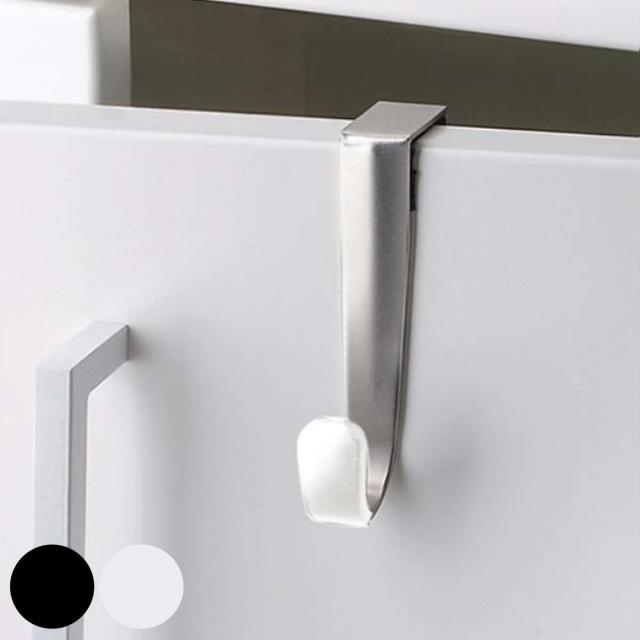シンク下戸棚の扉や引き出し等に引っ掛けて使えるキッチンフックです。フック部裏側は緩衝材で保護されており、家具や戸棚の扉が傷つくのを防止します。厚さ約2cm未満、上部の隙間約4mm以上の扉に対応しています。