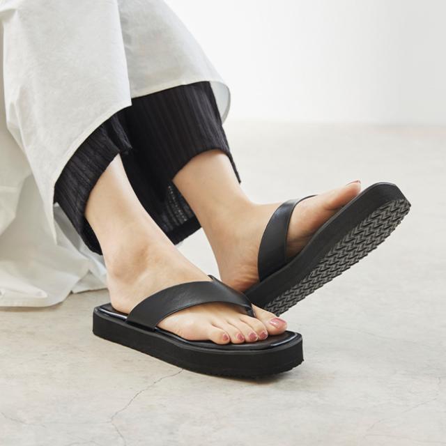 トレンド継続中の厚底アイテムから、プラットフォームトングサンダルが登場。