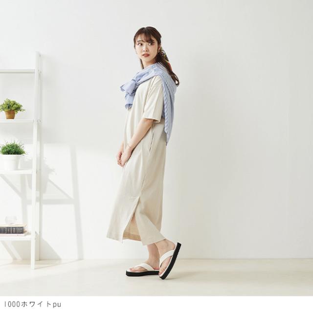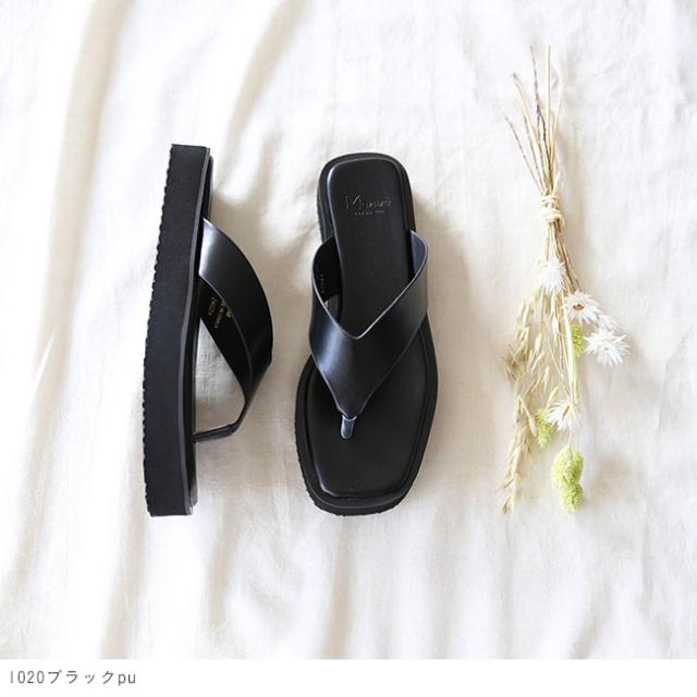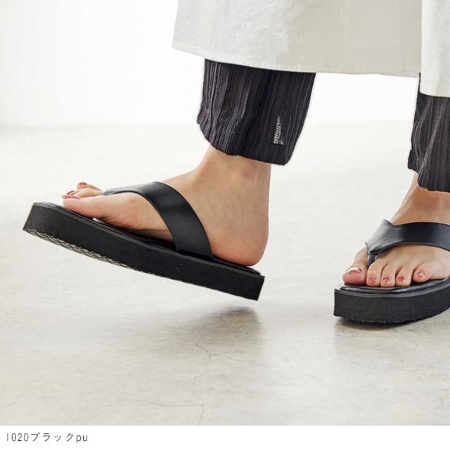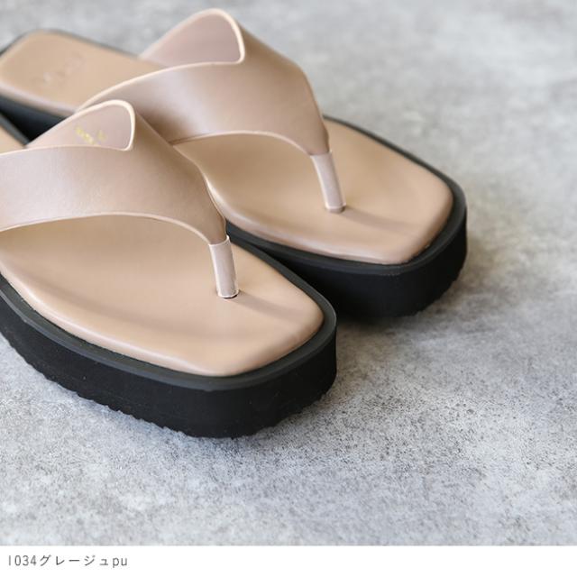 サンダル レディース 厚底 トングサンダル スクエアトゥ ぺたんこプラットフォーム 送料無料 在庫限り
