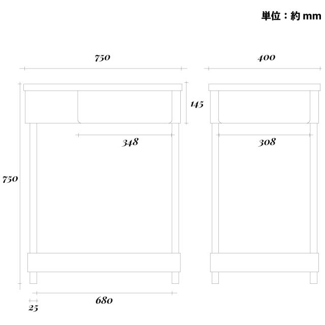 幅750×奥行400×高さ750(蛇口寸法は除く)
