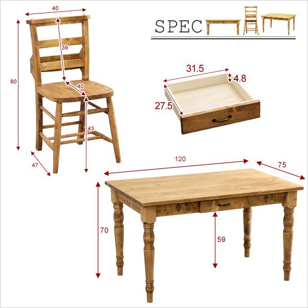 | 材質 | チェア:天然パイン材仕上げ 自然オイル塗装 ※脚裏にフェルト付き テーブル:天然パイン材仕上げ 自然オイル塗装 ※引き出し取手鋳物付き |