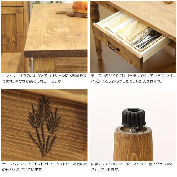 Almee アルム ダイニングテーブル 幅120cm (ダイニングテーブル セット 天然木 パイン カントリー 麦の穂彫刻 引き出し 収納 ガタつき防止アジャスター 高級感 おしゃれ おすすめ)