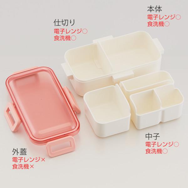 4点ロックでしっかり閉められます。蓋裏には汁漏れしにくいパッキン付きなので持ち運び安心です。蓋を外せば食洗機対応なのでお手入れも簡単です。