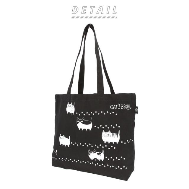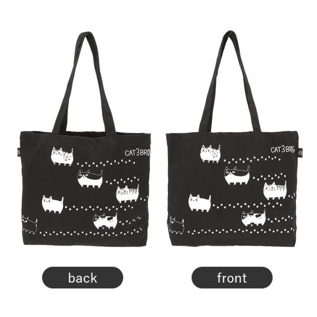 トートバッグ キャンバス a4 横 通販 猫3兄弟 レディース おしゃれ かわいい ネコ 横長トート 猫柄 布バッグ 肩掛け ショルダーバッグ 猫雑貨 猫グッズ レッスンバッグ お稽古バッグ