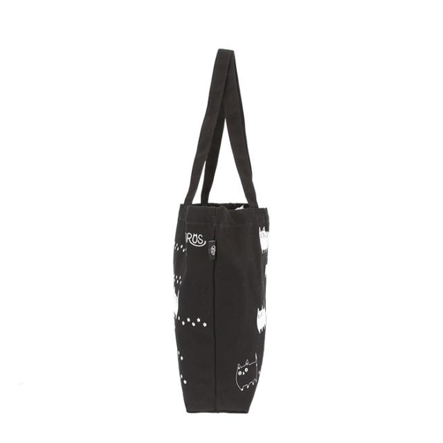 - 猫のプリントが可愛くて購入しました。 中にポケットがあります。たくさん入るのとキャンバス地で丈夫です。真ん中にホックがあると中身が見えなくて良いかなぁと思いました。とても可愛いです。