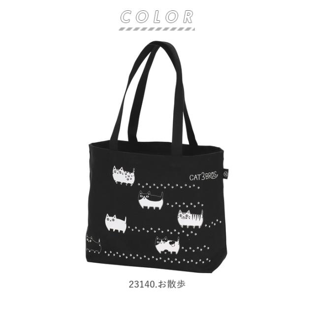 トートバッグ キャンバス a4 横 通販 猫3兄弟 レディース おしゃれ かわいい ネコ 横長トート 猫柄 布バッグ 肩掛け ショルダーバッグ 猫雑貨 猫グッズ レッスンバッグ お稽古バッグ 猫三兄弟