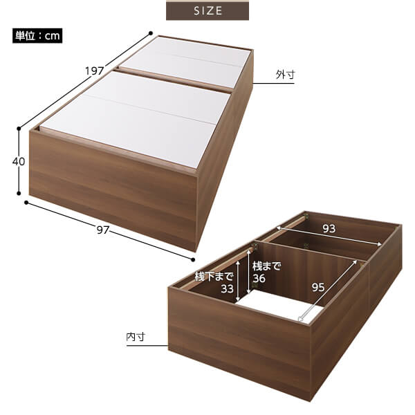 ベッド 収納付き 大容量 640L 木製 頑丈 省スペース コンパクト ヘッドレス シンプル モダン ナチュラル シングル ベッドフレームのみ 【北海道・沖縄・離島配送不可】
