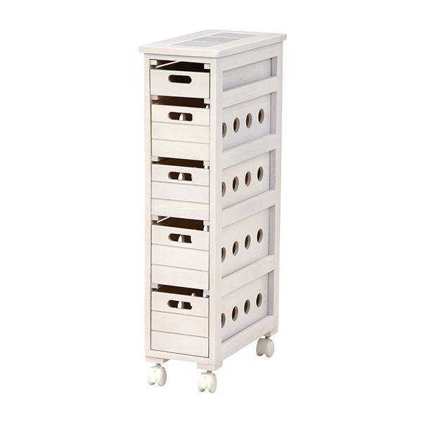 桐製 キッチンストッカー/台所収納 〔幅20×奥行40×高さ79cm〕 ホワイトウォッシュ 木製 キャスター 引き出し 天板タイル付き 【北海道・沖縄・離島配送不可】