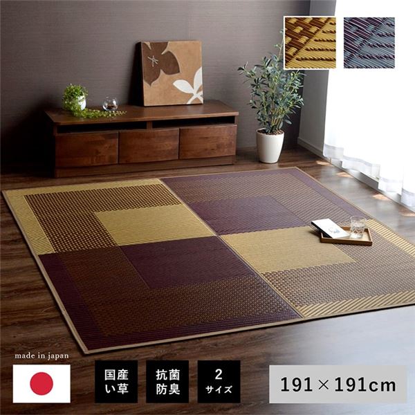夏用 い草 ラグマット/絨毯 〔シンプル ベージュ 191×191cm〕 正方形 日本製 抗菌 防臭 湿度調節 耐久性 〔リビング〕 【北海道・沖縄・離島配送不可】