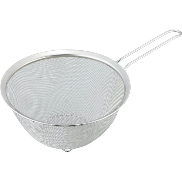 底部分がシンクに直接触れず、置いたまま簡単に水切りできる足付きタイプ。ハンドル付きで、ボウルに重ねて食材を水にさらすときや麺類の湯切りに便利です。