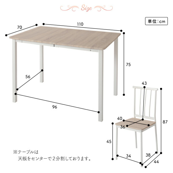 ※テーブルは天板をセンターで2分割しております。
