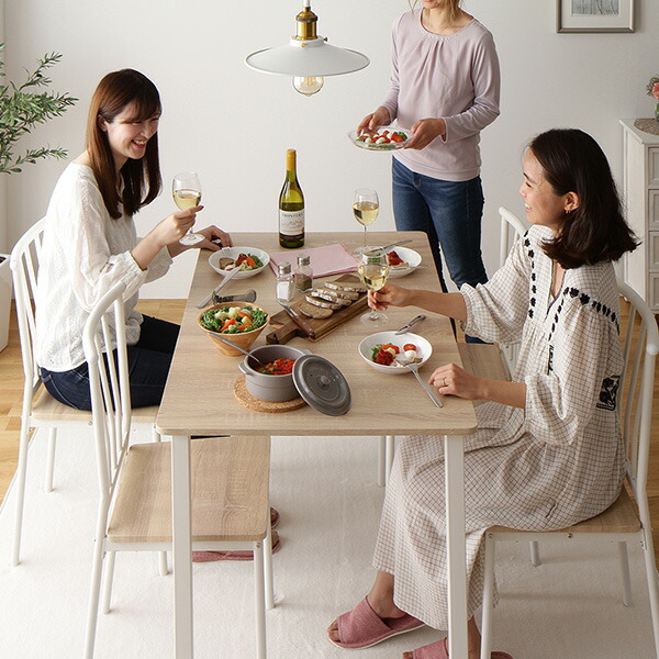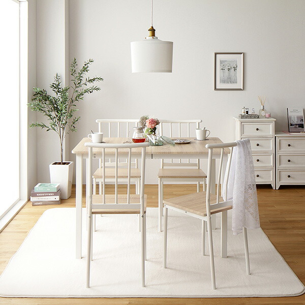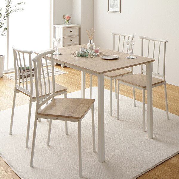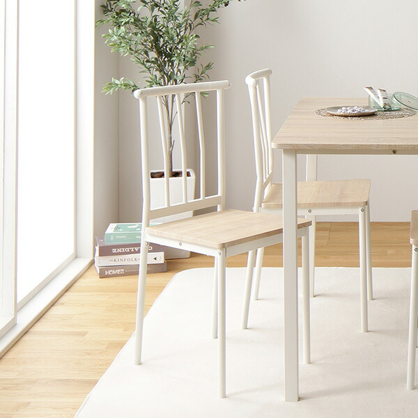 ダイニング セット 5点 テーブル チェア 4脚 ナチュラル × ホワイト フェミニン モダン 北欧 木製 スチール デザイン 4人掛け 【北海道・沖縄・離島配送不可】