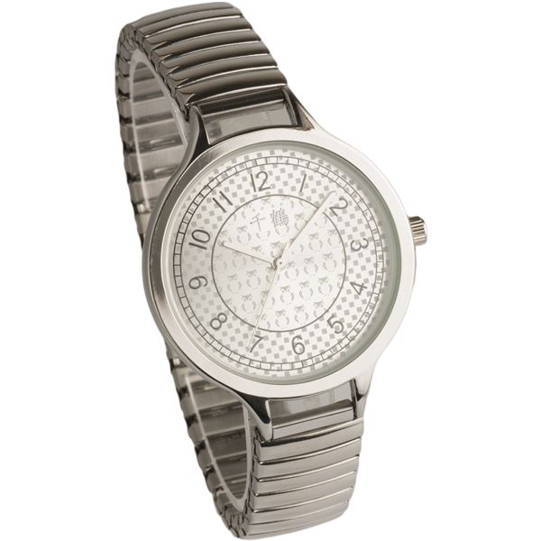 [千鶴] 腕時計 3針 フクロウモノグラム 伸縮ジャバラベルト CDW002-001 〔バンドカラー:シルバー/文字盤:シルバー〕 【北海道・沖縄・離島配送不可】