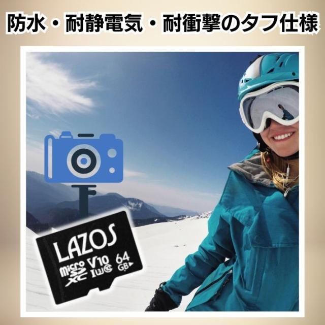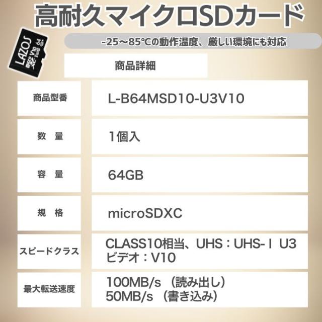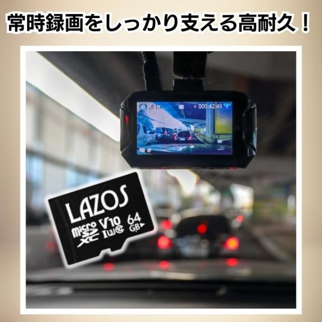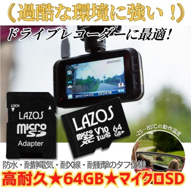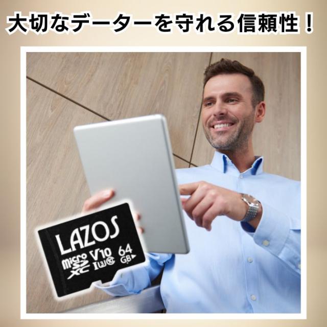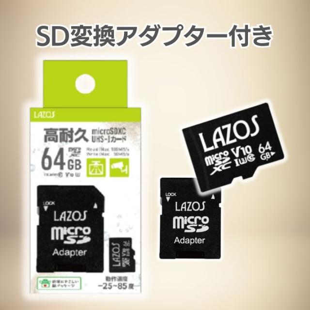 LAZOS 高耐久 マイクロSDカード 64GB UHS-I CLASS10 メモリーカード Nintendo Switch ニンテンドー3DS 任天堂 スイッチ ドライブレコーダー デジタルカメラ ビデオカメラ microSDカード microSDカード アダプター付 ギャラクシー アンドロイド スマートフォン スマホ 対応