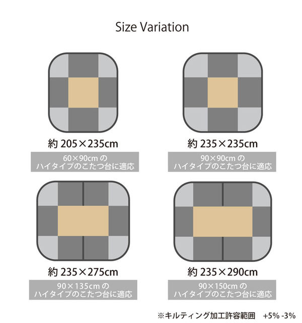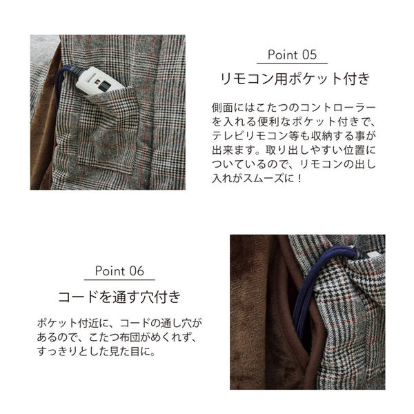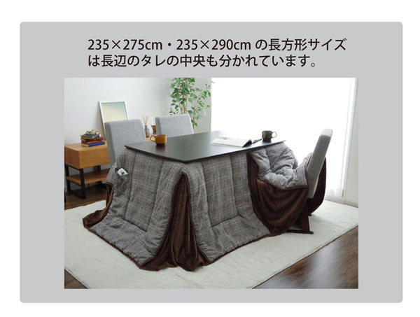 シンプルで生地感のあるハイタイプ用こたつ布団です。ツイード調のざっくりっとした表地と,裏地にはなめらかであったかなフランネルを使用しています。サイズ展開が豊富なため,お部屋に合ったサイズをお選びいただけます。