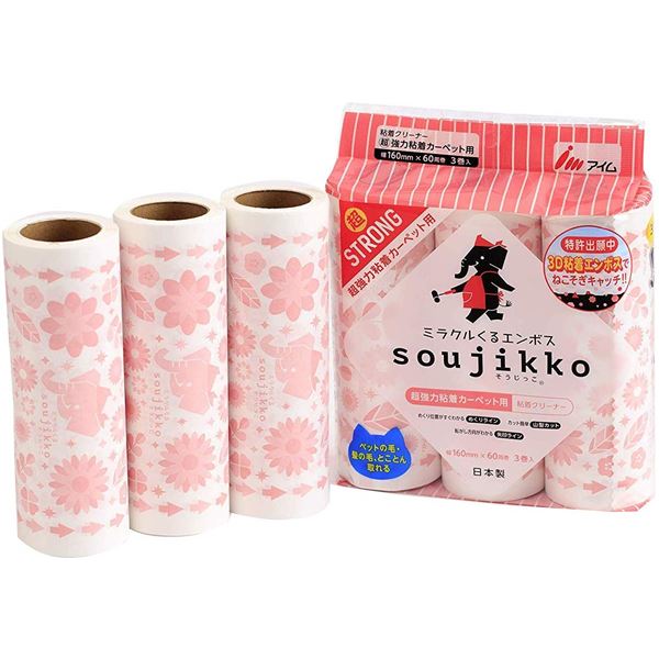 粘着クリーナー用 スペアテープ 〔カーペット用 超ストロング 3巻入 3個セット〕 幅16cm 60周巻き 『soujikko そうじっこ』 【北海道・沖縄・離島配送不可】