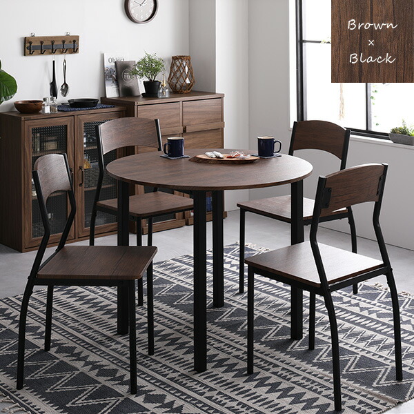 ■ブラウン 円形ダイニング 5点セット