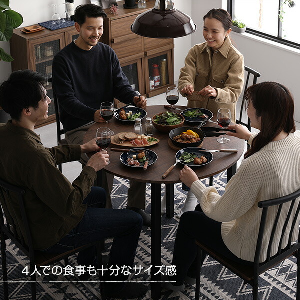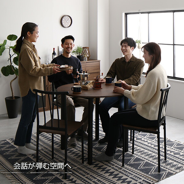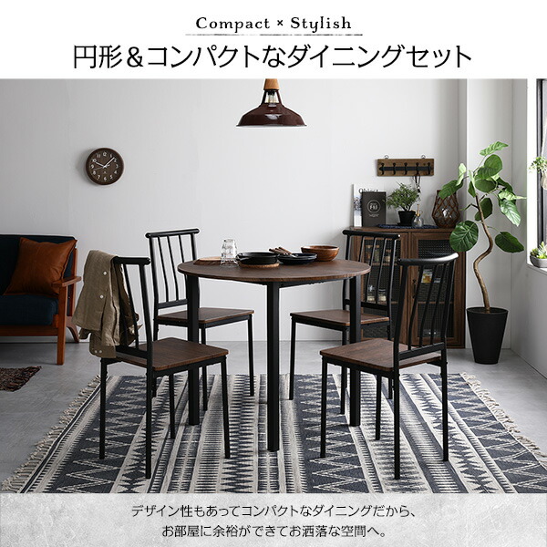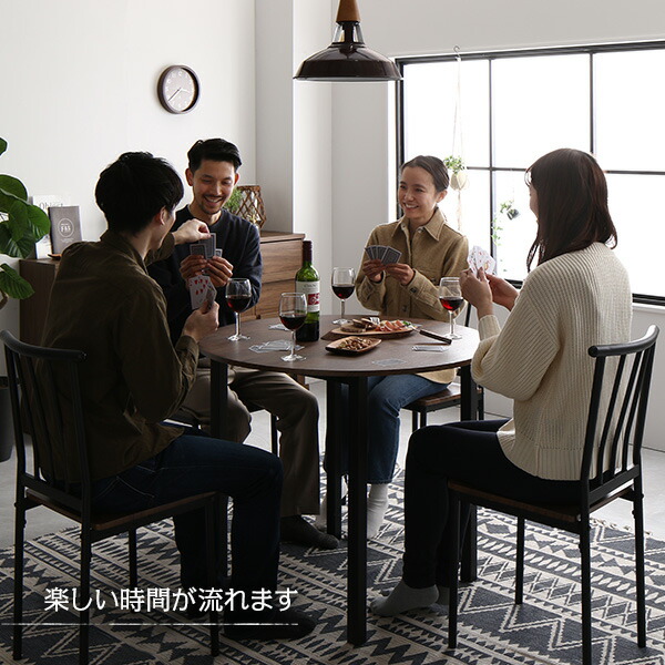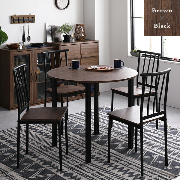 ダイニング セット 5点 円形 テーブル チェア 4脚 ブラウン ブラック シンプル モダン ヴィンテージ 木製 スチール デザイン 4人掛け 【北海道・沖縄・離島配送不可】