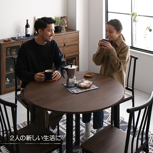 ■ブラウン 円形ダイニング 5点セット[当ページ]