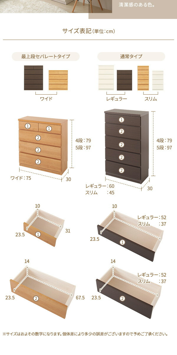 幅75cm 5段タイプ:幅75cm×奥行30cm×高さ97cm