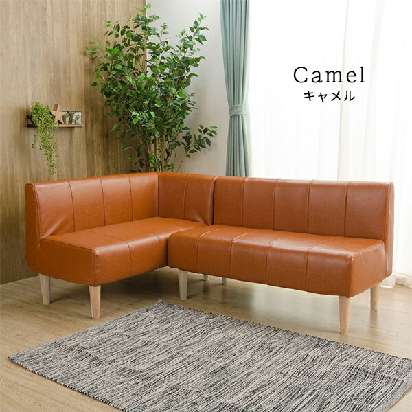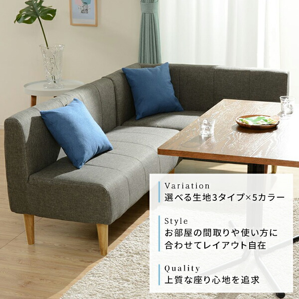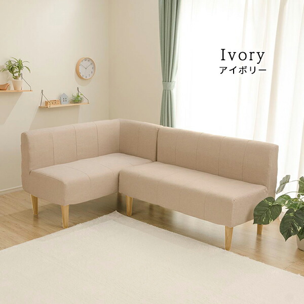 ダイニングソファー2点セット (2人掛け/左ヒジ) 〔ダリアン生地・ベージュ/ナチュラル脚〕 L字コーナー 日本製 【北海道・沖縄・離島配送不可】
