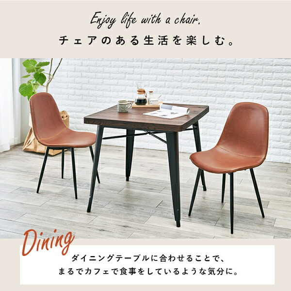 本革をリアルに再現した合成皮革を使用。ヴィンテージ調のダイニングチェアーです。