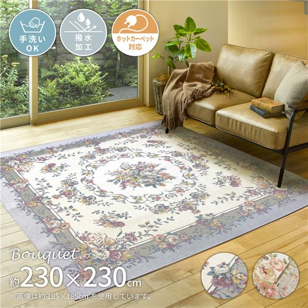 撥水付き シェニールゴブラン織りラグ ブーケ 約230×230cm グレー 【北海道・沖縄・離島配送不可】