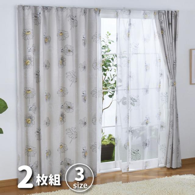 遮光カーテン 2枚組 スヌーピー フラワー 幅100cm 丈135cm 丈178cm 丈200cm 2級遮光 遮熱 形状記憶 Snoopy Peanuts おしゃれ(代引不可)【