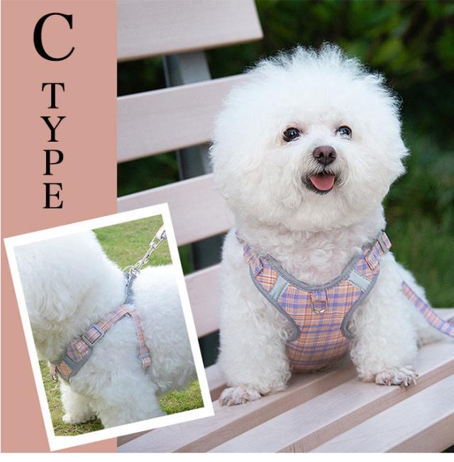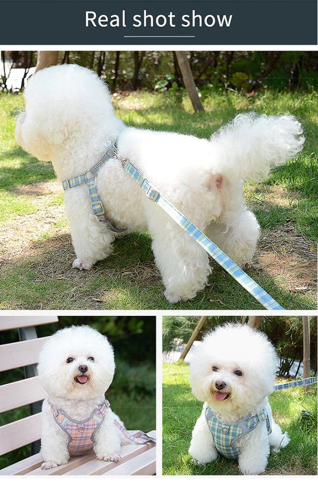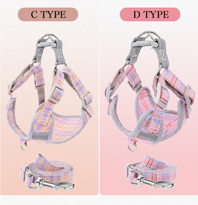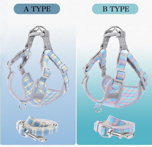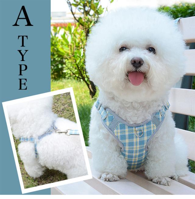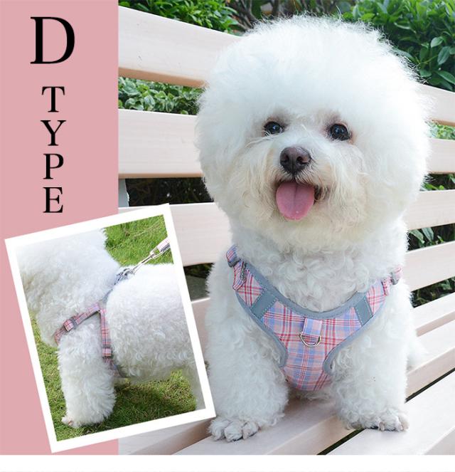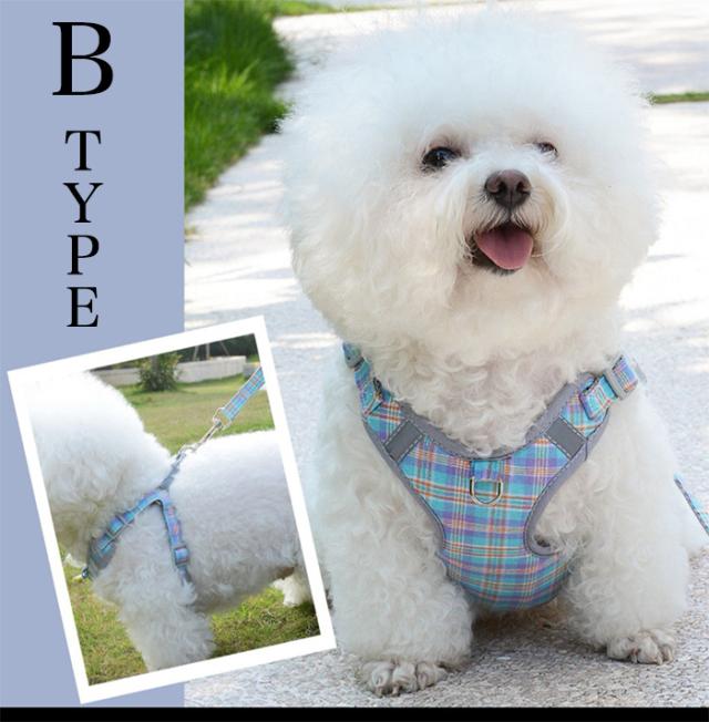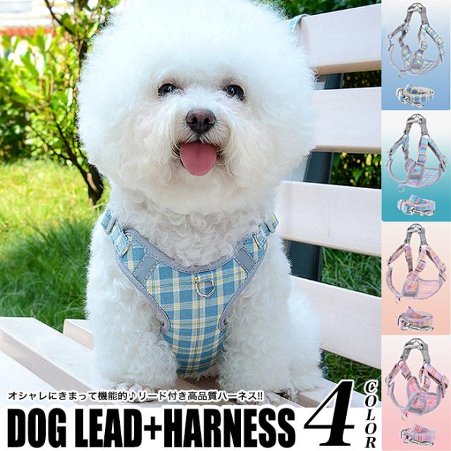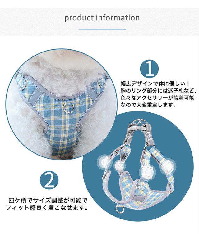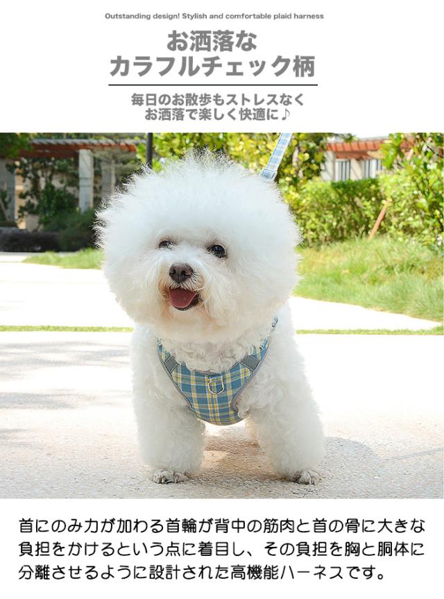 犬 猫 ハーネス リード付 カラフル チェック ウェアハーネス ペット 服 胴輪 キャット ドッグ h0348