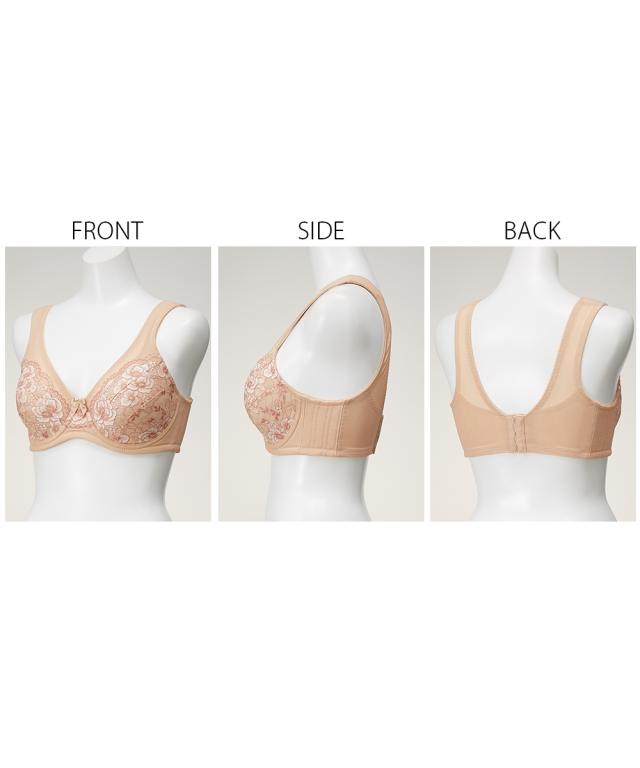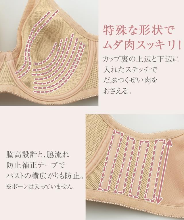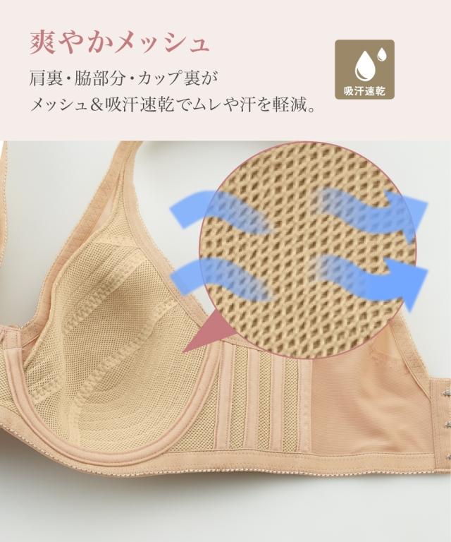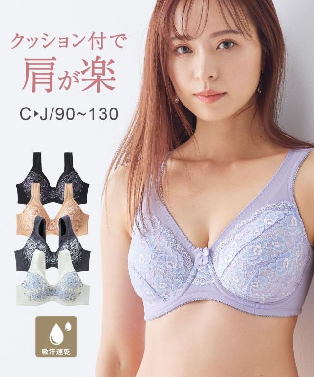 ブラジャー ワイヤー入り 大きいサイズ レディース 爽やか 肩裏クッション付 楽ちん 脇 背中すっきり カップ裏メッシュ仕様