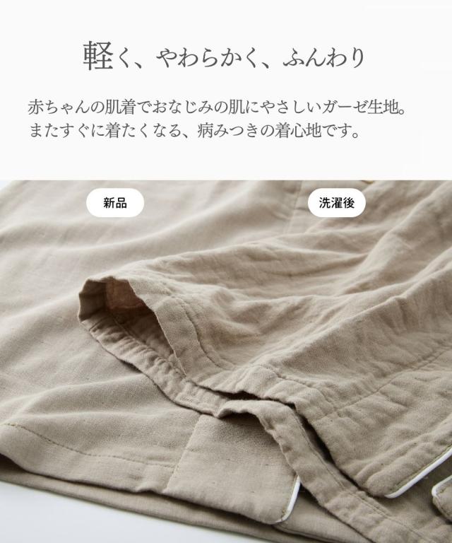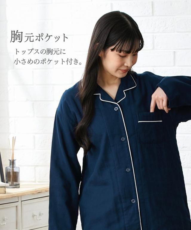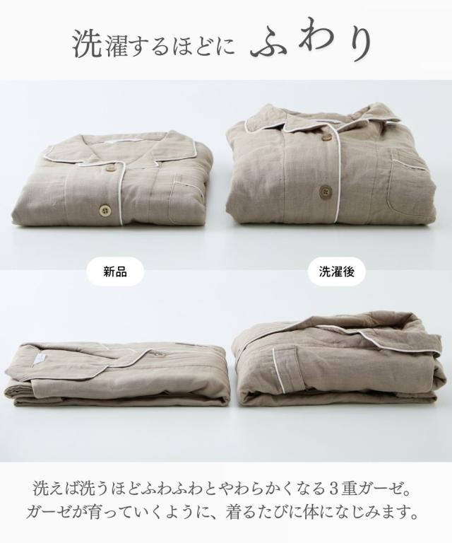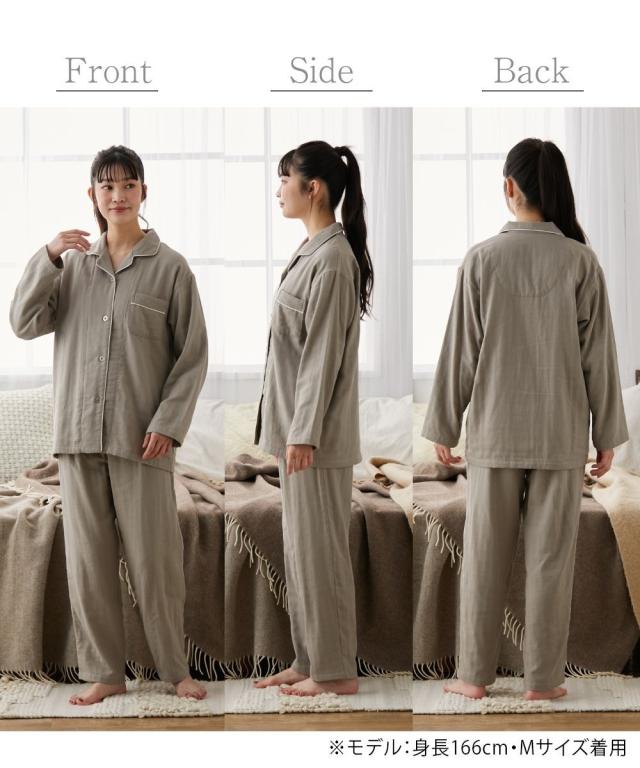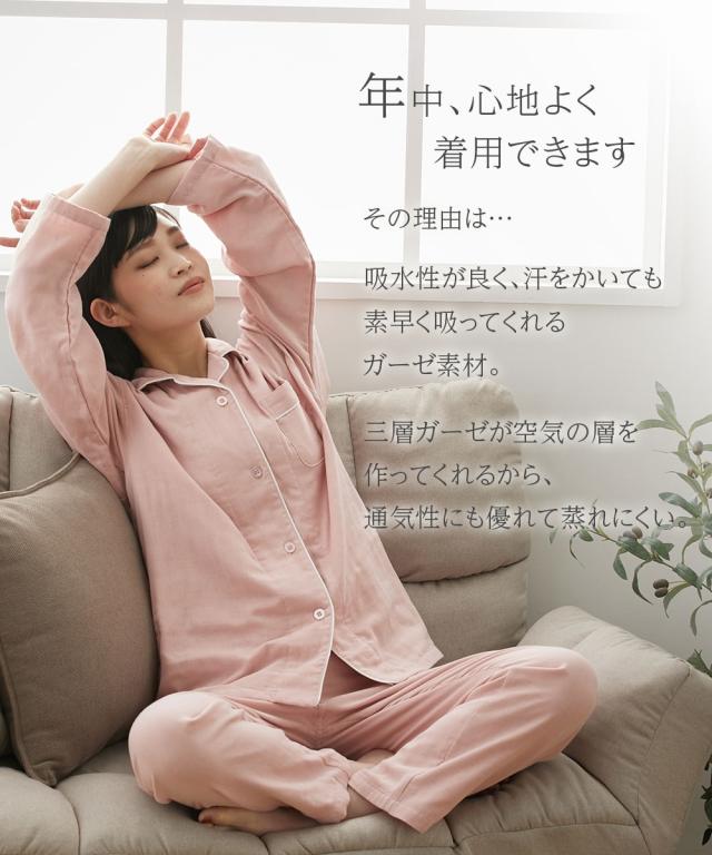 [keyword] レディースファッション 下着 ランジェリー インナー 大きいサイズ レディース 標準サイズ 普通サイズ ゆったりサイズ プラスサイズ 綿100% 素材 [comment] 軽く、やわらかく、ふんわり。やさしい肌触りの綿100%ガーゼ素材を3枚重ねに。空気の層を作ることで通気性もよく蒸れにくく快適、さらにやさしい快適なあたたかさに。長いシーズン着用いただけるパジャマです。ガーゼは洗うほどに柔らかくその風合いを増していきます。またすぐ着たくなる、病みつきの着心地です。