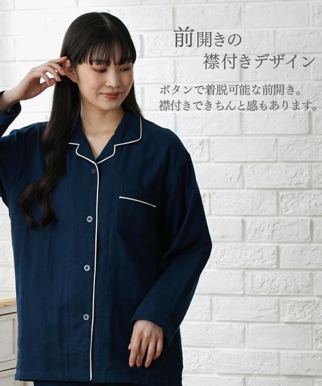 3重ガーゼ綿100%襟付き前開きパジャマ