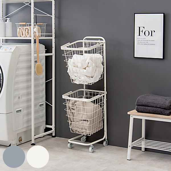 衣類やタオルを分別できるスクエアタイプの2段ランドリーラックです。2つのバスケットに洗濯物を分別することで、洗濯時の手間を省いて時間を節約できます。縦方向に収納できるので狭い場所でも圧迫感を感じず、ランドリー用品のストック入れとしても最適です。