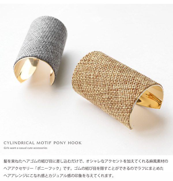 ポニーフック ヘアーフック ヘアアクセ レディース 麻風 オーバル 縦長 筒形 ポニーテール まとめ髪 大きい ※メール便不可 デイリー カジュアル トレンド シンプル 結婚式