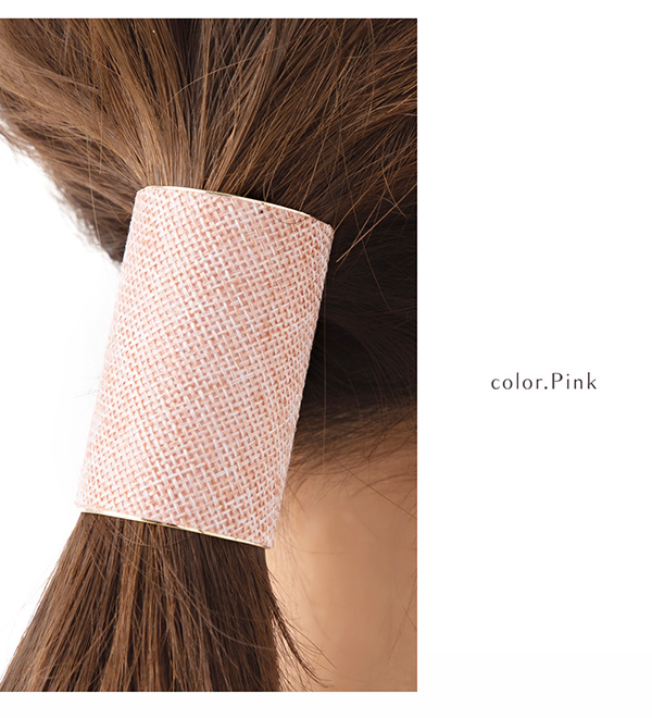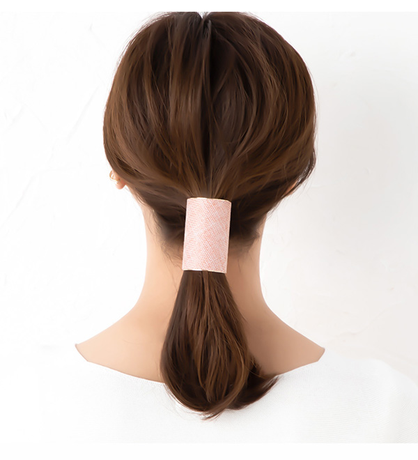 髪を束ねたヘアゴムの結び目に差し込むだけで、オシャレなアクセントを加えてくれる麻風素材の
