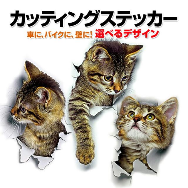 3D感カーステッカー 猫 カッティング/ウォールステッカー トリックアート だまし絵 車 バイク 部屋 冷蔵庫 キズ隠し 3DCAT2001
