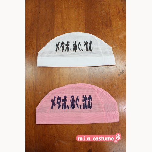 1283I●WP【送料無料・即納】 文言スイムメッシュキャップ メタボ、泳ぐ、沈む 色:白/ピンク サイズ:フリー