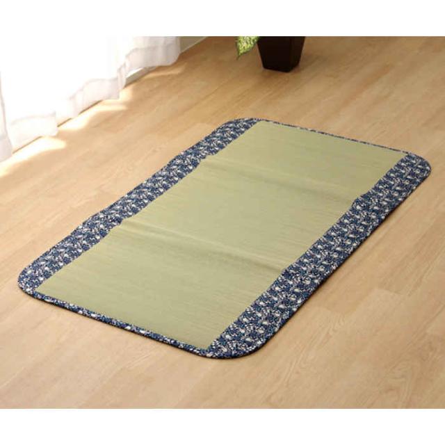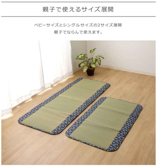 代引不可 ベビーマット い草マット フリーマット 約70×120cm 三つ折り 中材:固綿15mm 空気清浄 消臭 吸汗 持ち運び 洗濯不要 夏用 春夏用 寝具 純国産 日本製 ことり ネイビー IKEHIKO 7538209
