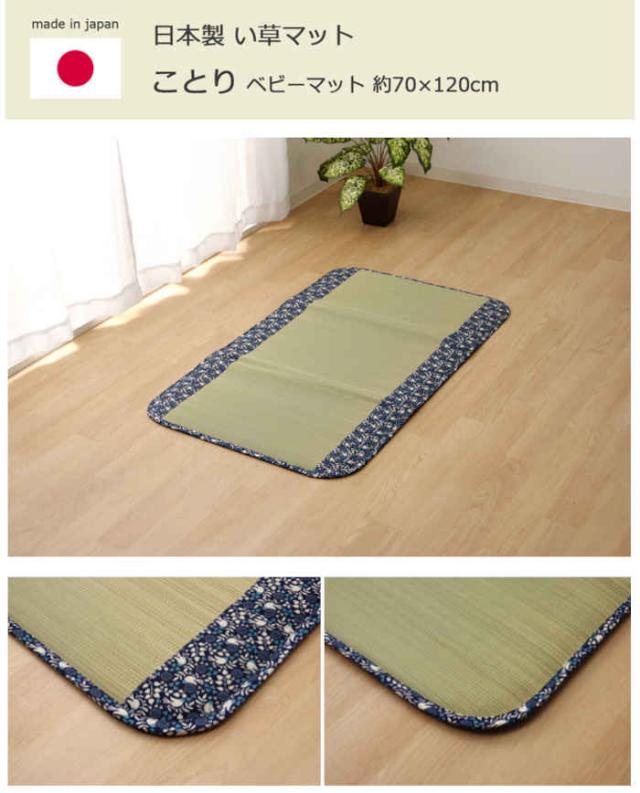 ■商品名:ベビーマット い草マット フリーマット 約70×120cm 三つ折り 中材:固綿15mm 空気清浄 消臭 吸汗 持ち運び 洗濯不要 夏用 春夏用 寝具 純国産 日本製 ことり ネイビー