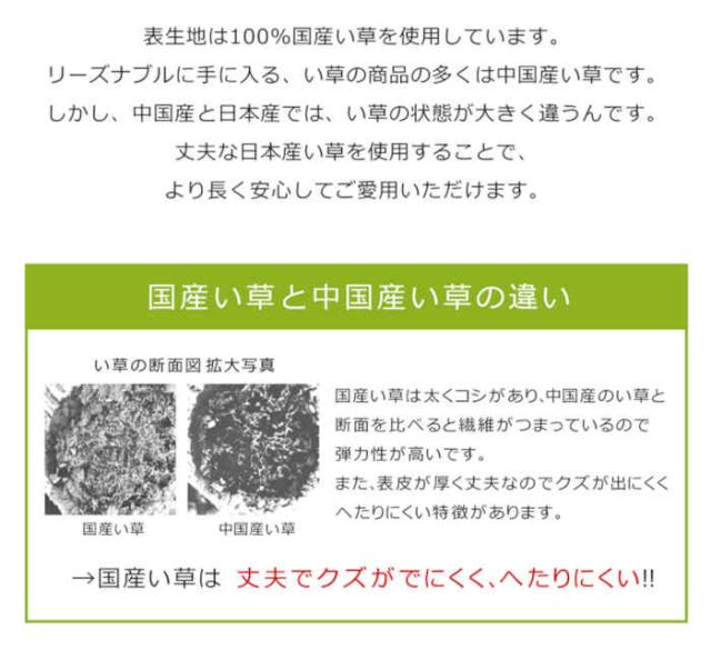 ■組成:素材:側地=い草(※メセキ織) 中材=固綿(ポリエステル)15mm ヘリ=綿100% 裏地=い草(※メセキ織)