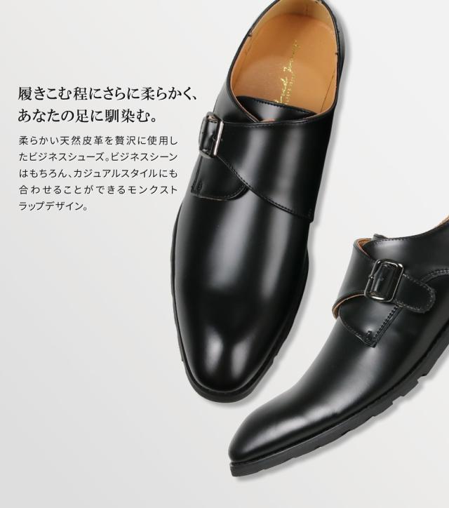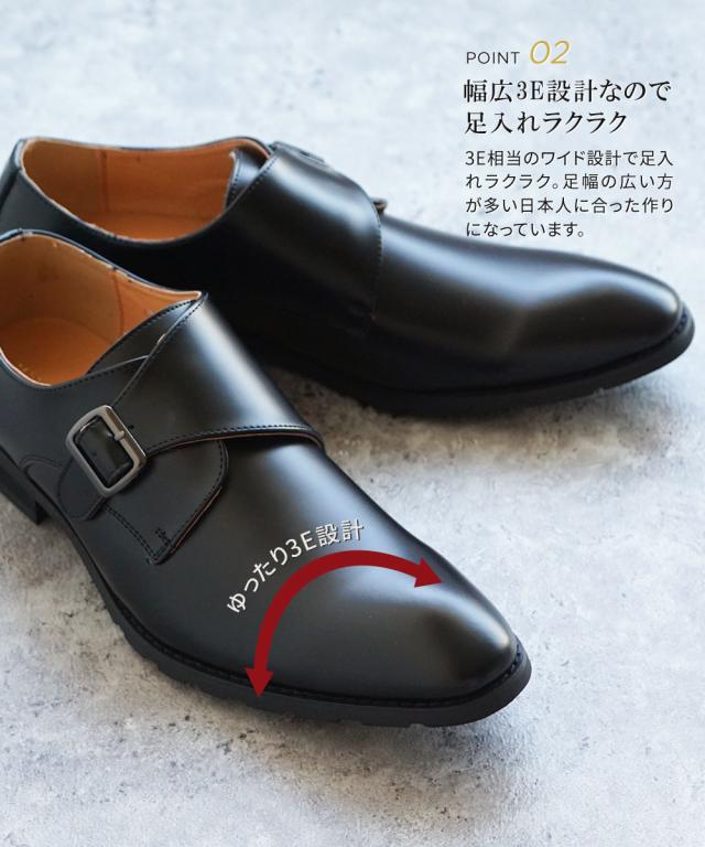 ビジネスシューズ 本革 メンズ 日本製 レザー モンクストラップ 紳士靴 本革 幅広 3e レザーシューズ メンズ 歩きやすい 履きやすい 痛くない 疲れにくい 革靴 カジュアル メンズ 通勤 男性用 父の日 天然皮革 国産 レザー ブラック 黒 2219