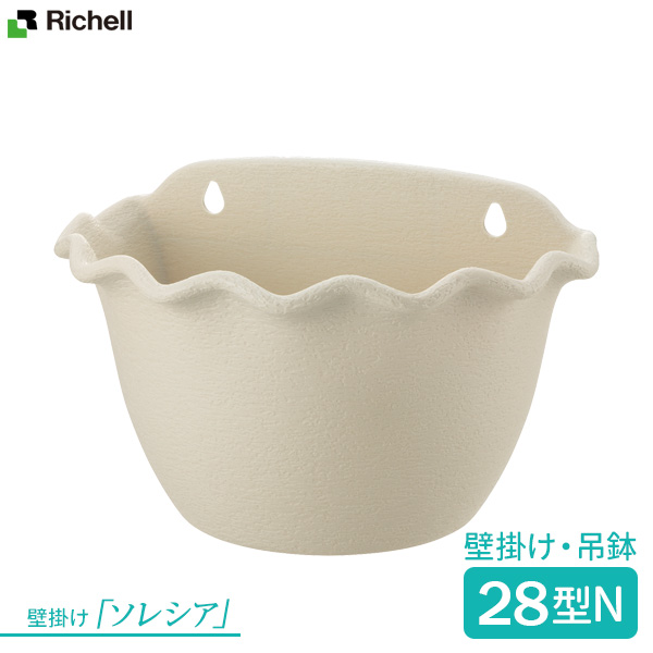 リッチェル 植木鉢 ソレシア 壁かけ N 28型 アイボリー(NIV) | 鉢 ポット 壁掛け 吊鉢 フレア かわいい 日本製 園芸鉢 プランター ガーデニング ナチュラル プラスチック 軽量 壁 塀 柵 エントランス