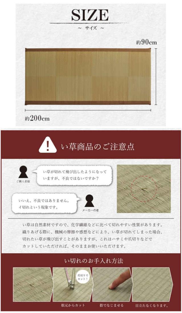 ■組成:素材:側地=い草(九州産) ※普通織、33目織 中材=固わた40mm ヘリ=綿100%(返し二方)
