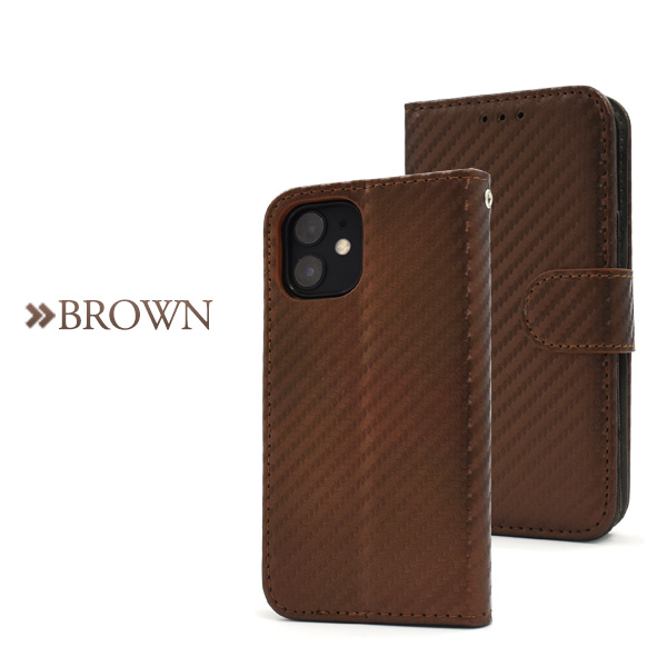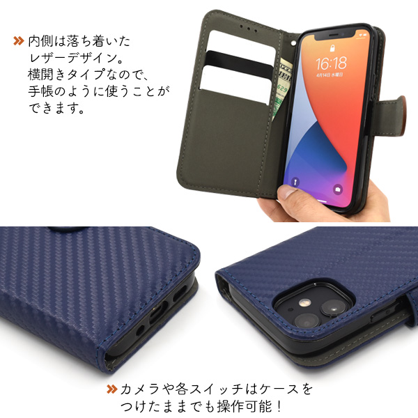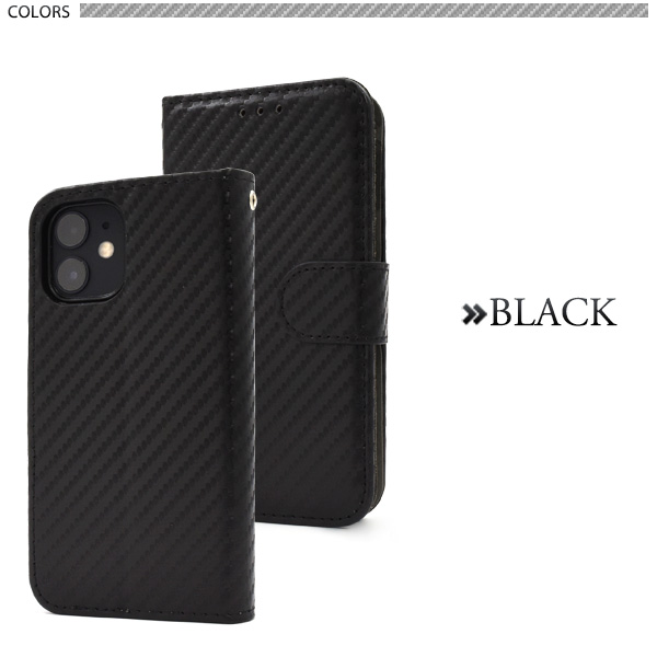スマホケース iPhone 12 mini カーボンデザイン 手帳型ケース 全4色 スタイリッシュ お洒落 上品 傷防止 iphone12mini 横開き カバー アイフォン12ミニ アイフォーン オフィス 社員用 会社 企業 職場