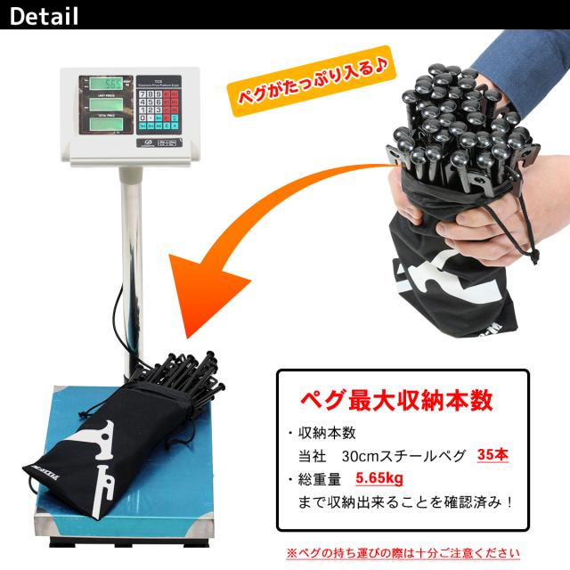 30cm以下のペグの収納ができます。キャンプでの1台のテントやタープの設置に必要とされる本数を十分収納可能です。