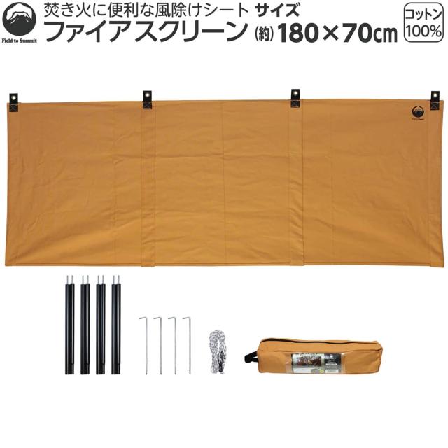 在庫処分 Field to Summit ファイアスクリーン OFBWF 陣幕 綿100% 焚火 風除 ウインドスクリーン リフレクタ 防風 ピンタイプ ポール ソロキャンプ 収納袋 キャンプ場 バーベキュー用品