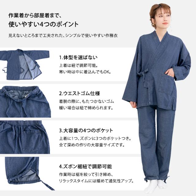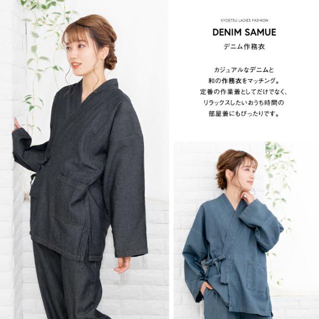 デニム 作務衣 レディース 綿 女性 女性用 大きいサイズ おしゃれ 部屋着 夏 作務衣大きいサイズ パジャマ 無地 かわいい 通年 夏用 冬 おしゃれ女性 黒 紺 青 作務衣風 お洒落 普段着 作務衣パジャマ M L デニム作務衣 春 秋 さむえ ユニフォーム(rg)