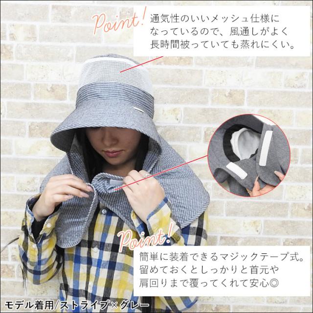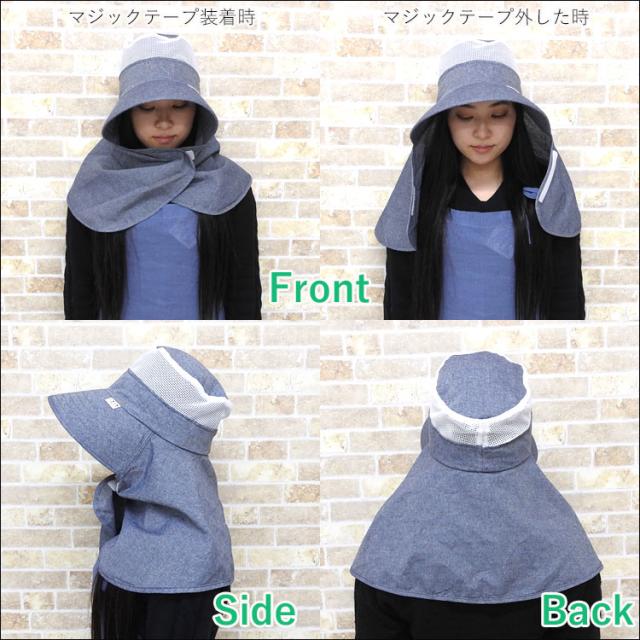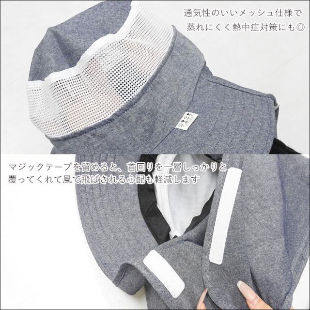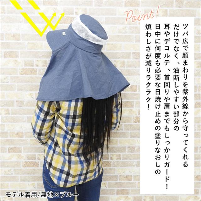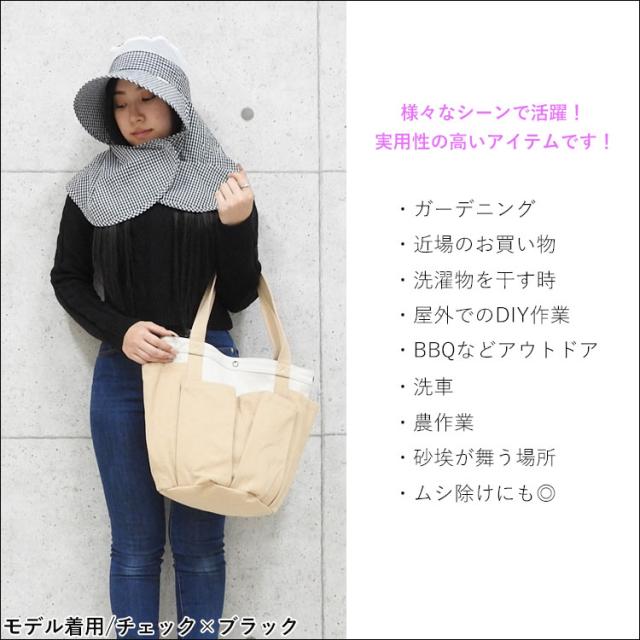 ・つば広でUV対策もしっかり!ネックカバーは肩まであり首やデコルテもガード。