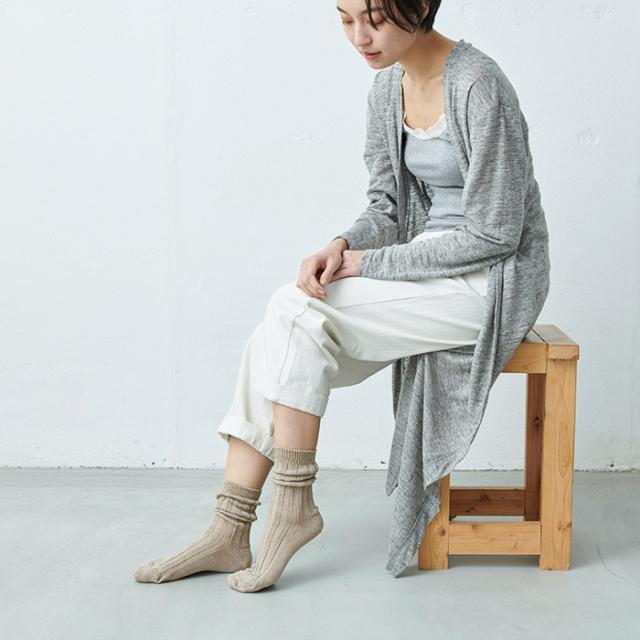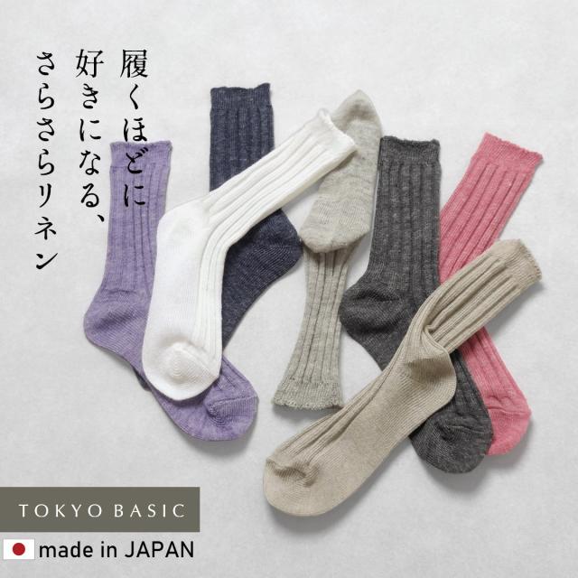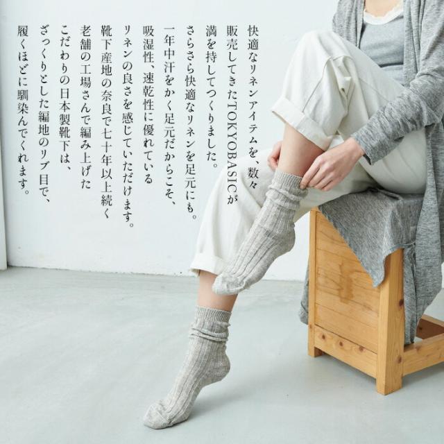 特徴 このさらさら感、履くほどに、どんどん好きになる。快適なリネンアイテムを数々販売してきたTOKYO BASICが満を持してつくりました。さらさら快適なリネンを足元にも。一年中汗をかく足元だからこそ、吸湿性、速乾性に優れているリネンの良さを感じていただけます。靴下産地の奈良で七十年以上続く老舗の工場さんが編み上げたこだわりの日本製靴下は、ざっくりとした編地のリブ目で、履くほどに馴染んでくれます。