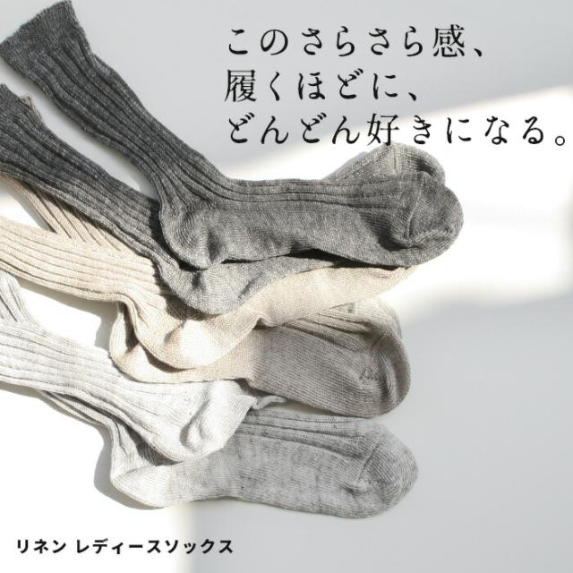 靴下 レディース 日本製 リネン ソックス 22.0〜25.0cm 40代 50代 60代 30代 麻 天然素材 蒸れない 速乾 天然の抗菌性 ナチュラル ギフト プレゼント 白 ホワイト グレー ベージュ 生成 ネイビー 赤 紫 紺
